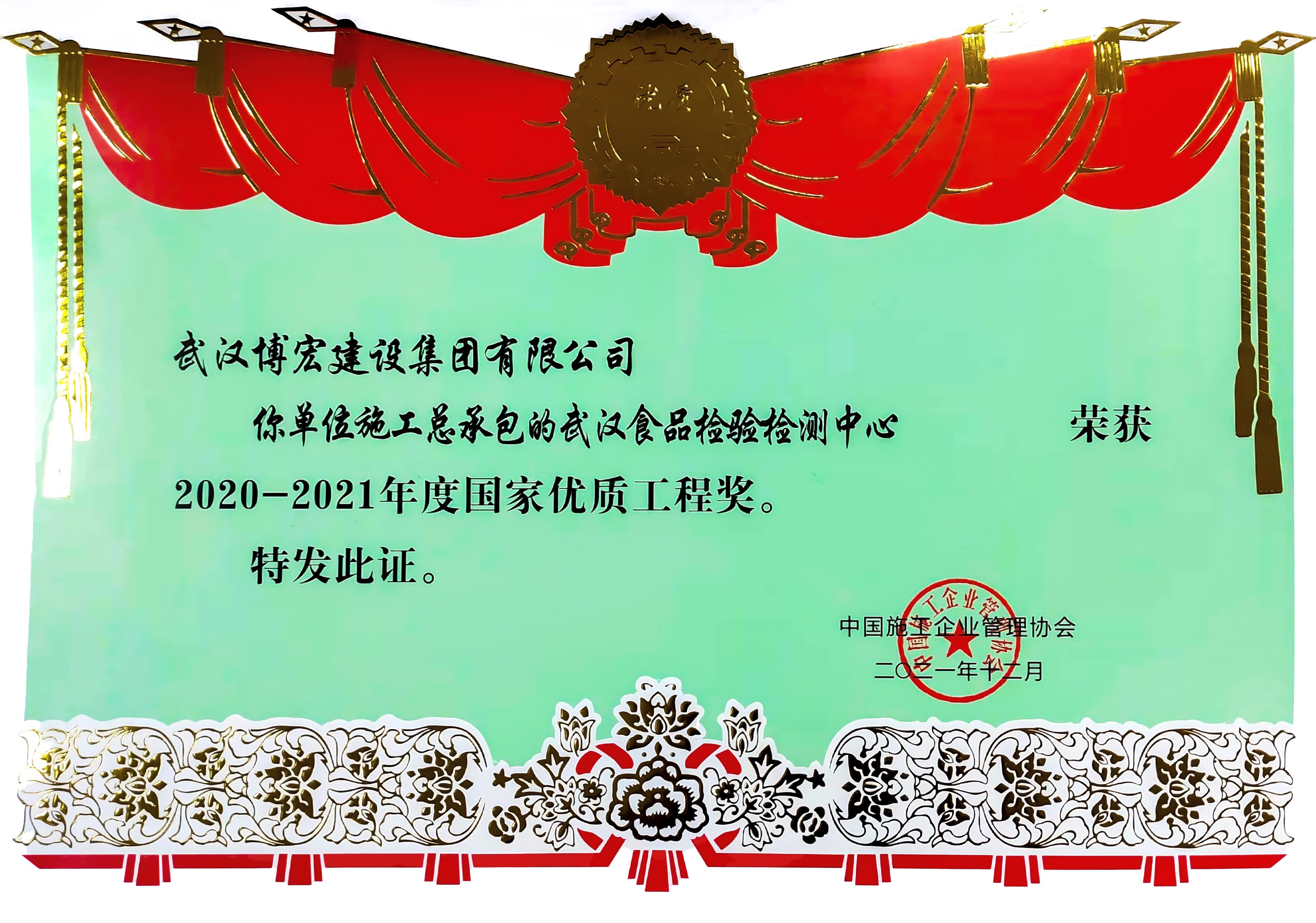 2020-2021年度國家優(yōu)質(zhì)工程獎-武漢食品檢驗(yàn)檢測中心