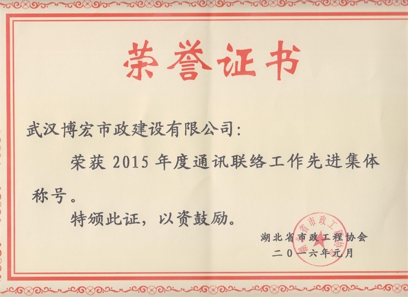2015年度通訊聯(lián)絡工作先進集體稱號