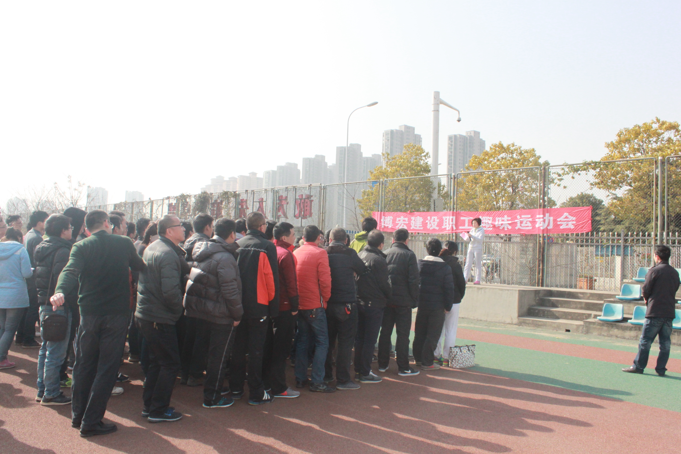此次趣味運動會共設(shè)8個比賽項目,1個娛樂項目,分別是:障礙跑接力、排球定點發(fā)球、快快跳起來、五毛和一塊、拔河、搶棒棒糖、4*100米接力賽、趣味足球賽。各個項目部和部門均積極組隊參加比賽,總共有10支參賽隊伍,各代表隊的參賽熱情十分高漲。這次的活動可以說是一次博宏建設(shè)領(lǐng)導(dǎo)和全體員工的全民健身運動,不僅激發(fā)了全體員工的參與意識、團結(jié)意識,更促進了各部門和各項目部相互之間的了解,增進了友誼。