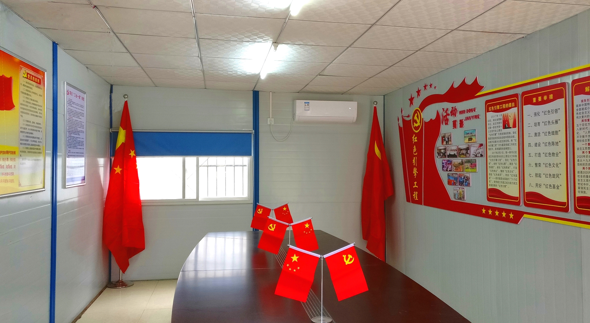 為做好本次工地一線黨建氛圍營(yíng)造工作,公司派專(zhuān)人前往正信花園項(xiàng)目現(xiàn)場(chǎng)開(kāi)展測(cè)量、設(shè)計(jì),將十九大報(bào)告中最能反映人民心聲與呼聲的十二條“金句”摘選出來(lái)有機(jī)融入項(xiàng)目部花園景觀,精心設(shè)計(jì)黨員活動(dòng)室,營(yíng)造濃厚氛圍,將黨的引領(lǐng)作用深入項(xiàng)目一線。“信義之道,工匠之心”,時(shí)代呼喚工匠精神,一條凝練著漢陽(yáng)市政企業(yè)文化精髓的巨幅墻面畫(huà)赫然鋪滿(mǎn)在項(xiàng)目部迎面右側(cè),讓“誠(chéng)信、務(wù)實(shí)、擔(dān)當(dāng)、精進(jìn)”的價(jià)值觀在耳濡目染中融入企業(yè)職工心間,推動(dòng)項(xiàng)目建設(shè)更上層樓。