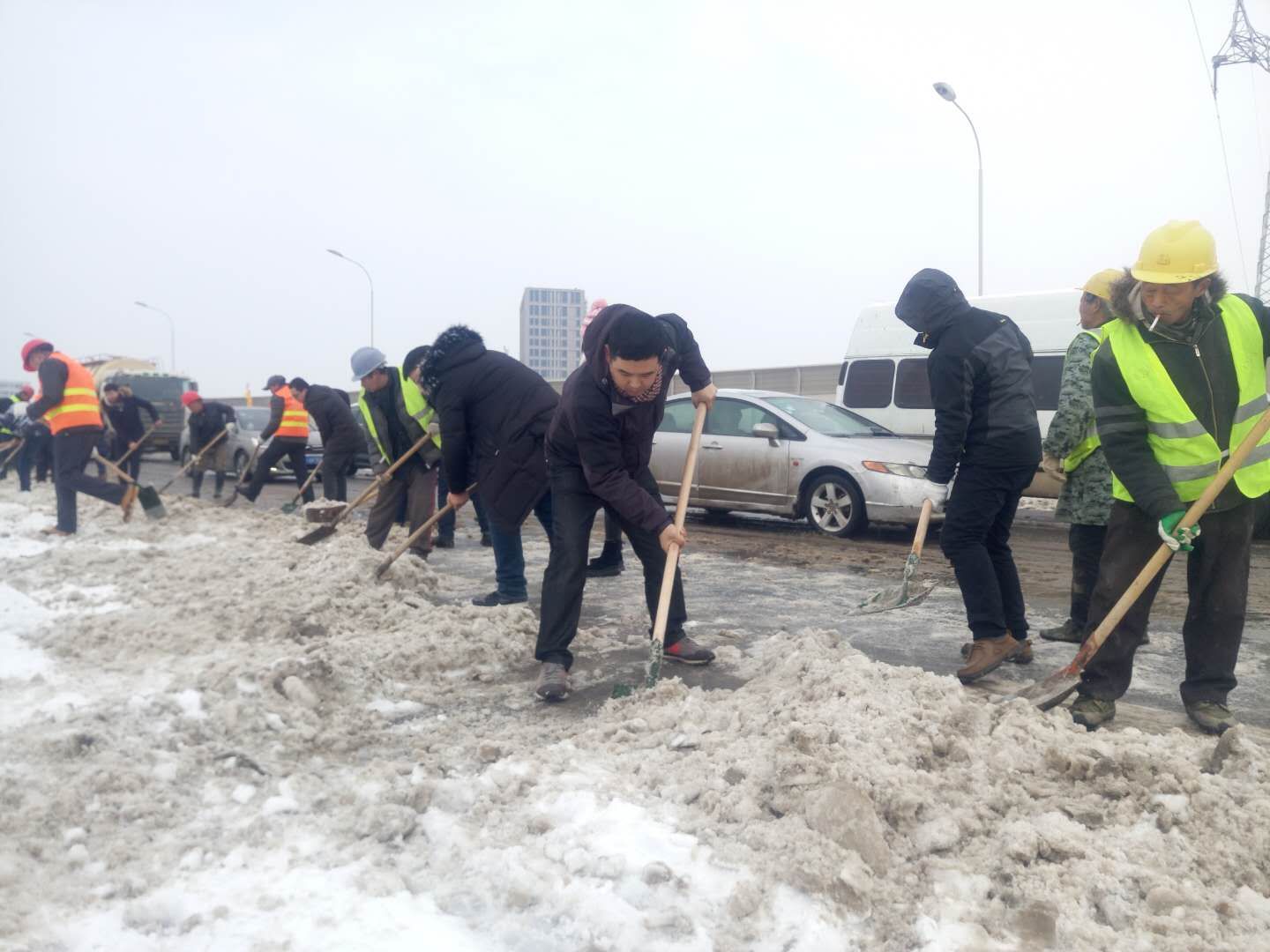 1月28日,公司廣大職工不畏低溫嚴(yán)寒,來(lái)到三環(huán)線(龍陽(yáng)大道~漢陽(yáng)大道)路段,繼續(xù)奮戰(zhàn),男女齊上陣。期間,漢陽(yáng)區(qū)委書(shū)記馬澤江、集團(tuán)公司董事長(zhǎng)嚴(yán)悌文等領(lǐng)導(dǎo)來(lái)到現(xiàn)場(chǎng)指揮工作,為廣大建設(shè)者鼓勁兒加油,下午2點(diǎn),基本完成主干道清掃,車輛予以通行,截至5點(diǎn),徹底完成三環(huán)線(龍陽(yáng)大道~漢陽(yáng)大道)路段的積雪清掃工作。隨后,鏟雪隊(duì)伍搶抓時(shí)間,來(lái)不及休息便再一次來(lái)到琴臺(tái)大道對(duì)昨夜的積雪進(jìn)行二次清除,進(jìn)一步拓寬快車道,下午6點(diǎn)30分完成拓寬任務(wù)。