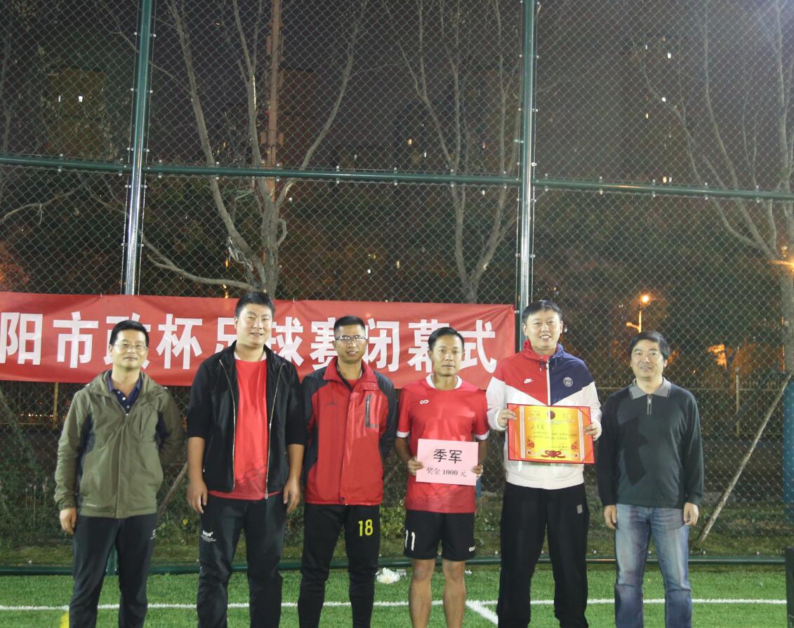 在經(jīng)歷了一個(gè)多月時(shí)間、十六場(chǎng)精彩絕倫的比賽后,11月15日晚,第十二屆“漢陽(yáng)市政杯”職工足球賽正式落下帷幕。經(jīng)過(guò)激烈角逐,五八建元聯(lián)隊(duì)榮獲冠軍,機(jī)關(guān)代表隊(duì)斬獲亞軍,三公司隊(duì)(博宏隊(duì))獲得季軍。漢陽(yáng)市政集團(tuán)公司工會(huì)主席黃桂華,漢陽(yáng)市政五公司總經(jīng)理王慶敏、漢陽(yáng)市政一公司黨支部副書記陳軍等親臨決賽現(xiàn)場(chǎng)并為獲獎(jiǎng)隊(duì)伍頒獎(jiǎng)。