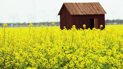 陽(yáng)春三月,春風(fēng)如沐。桃花紅了、柳葉綠了,長(zhǎng)江的水也暖和了。露水吻濕了片片綠葉,整個(gè)江城散發(fā)出如酒似蜜的清香。田里金黃的油菜花,成了蝴蝶的天地,美麗的蝴蝶在金黃色的舞臺(tái)上跳著柔和而優(yōu)美的舞姿,偶爾一陣微風(fēng)吹來,油菜花立刻涌起了高低起伏的“金浪花”,遠(yuǎn)遠(yuǎn)望去,令人美不勝收!——這是我記憶中的春天油菜花地。