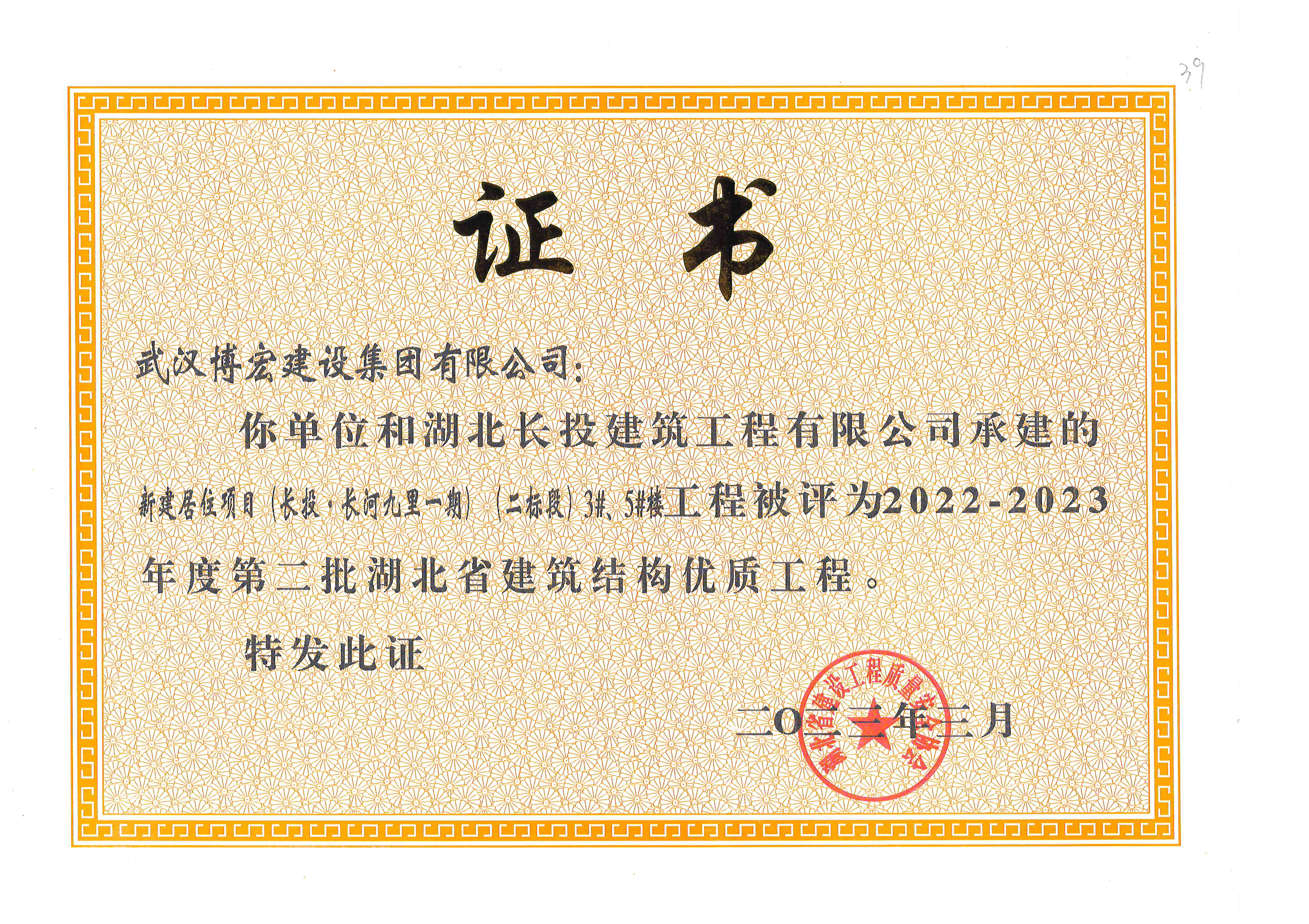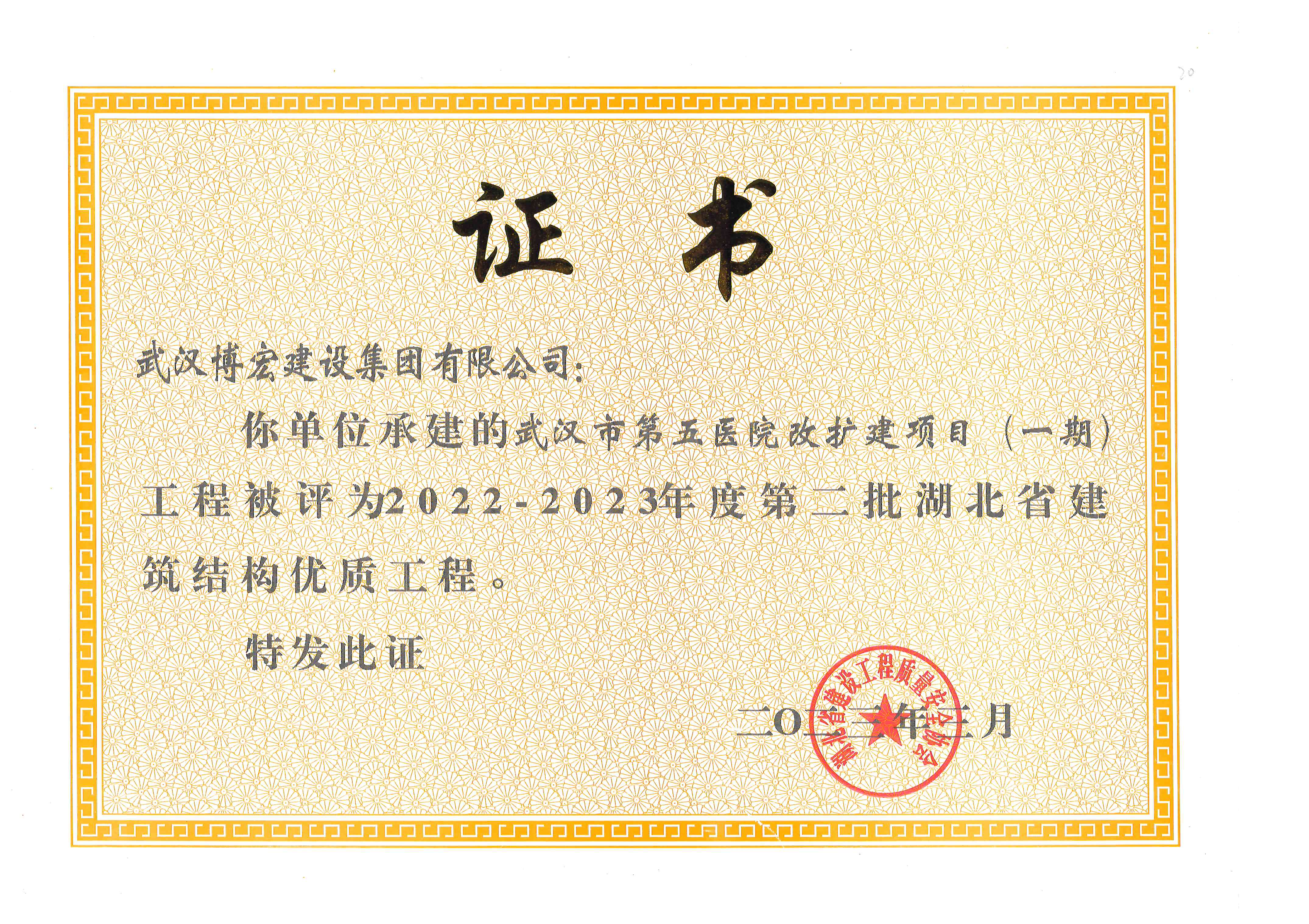 近日,湖北省住建廳2022—2023年度第二批湖北省建筑結(jié)構(gòu)優(yōu)質(zhì)工程項(xiàng)目名單出爐,由博宏建設(shè)集團(tuán)承建的武漢市第五醫(yī)院改擴(kuò)建項(xiàng)目(一期)、新建居住項(xiàng)目(長(zhǎng)投·長(zhǎng)河九里一期)(二標(biāo)段)3#、5#樓榮獲湖北省建筑結(jié)構(gòu)優(yōu)質(zhì)工程獎(jiǎng)。“湖北省建筑結(jié)構(gòu)優(yōu)質(zhì)工程獎(jiǎng)”是湖北省建筑結(jié)構(gòu)工程領(lǐng)域的最高獎(jiǎng)項(xiàng),獲得該獎(jiǎng)項(xiàng)標(biāo)志著該項(xiàng)目在工程結(jié)構(gòu)設(shè)計(jì)、工程施工管理、材料供應(yīng)保證、過程質(zhì)量控制等方面均達(dá)到省級(jí)領(lǐng)先水平。