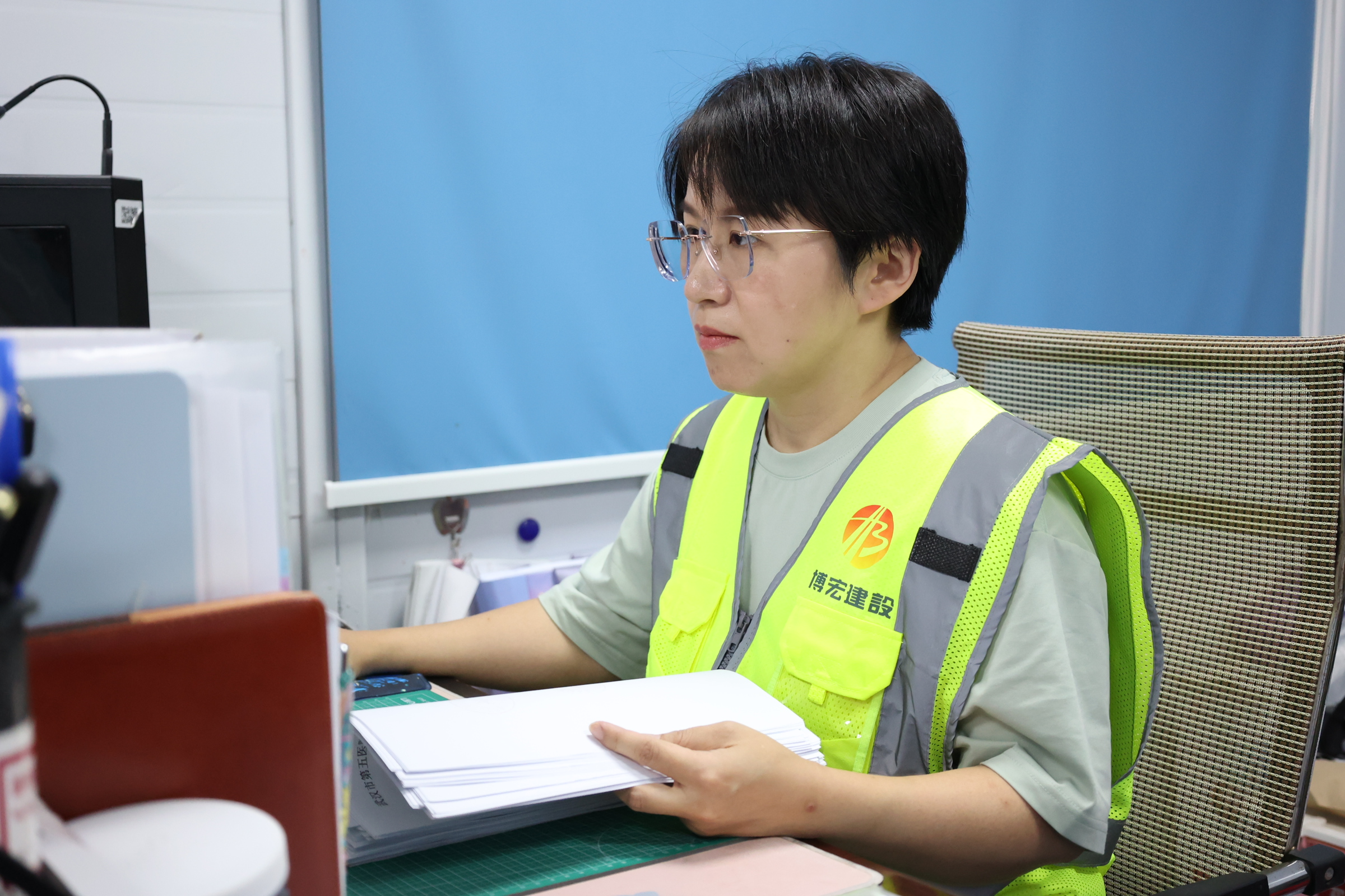 為了讓每一份資料都經(jīng)得起推敲,胡家珍除了每天在資料中穿梭,還經(jīng)常要下項(xiàng)目與一線人員溝通,了解施工的整體概況,掌握項(xiàng)目建設(shè)進(jìn)展的實(shí)際情況,她舉例說到,“打混凝土之前我們要做什么,打了混凝土之后要干什么,現(xiàn)場工序的申報(bào)、現(xiàn)場實(shí)驗(yàn)、送檢,每一步工作都要提前安排好,確保資料和現(xiàn)場同步。”只有在累積和充分掌握現(xiàn)場實(shí)際和相應(yīng)的作業(yè)基礎(chǔ)知識(shí)后,才能把資料的編制工作做得得心應(yīng)手。